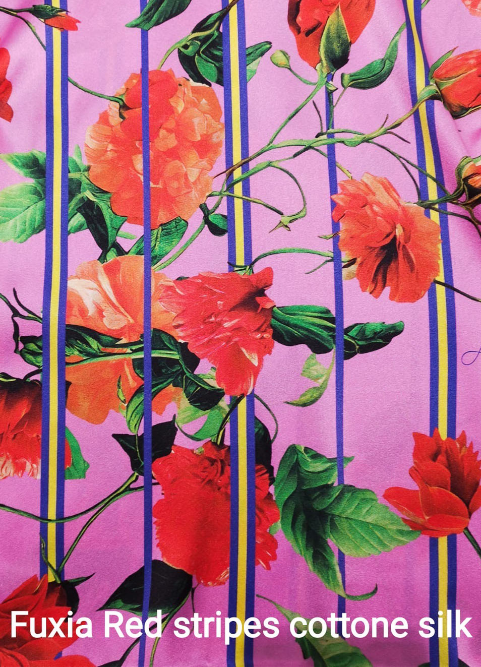 Silk and cotton fabric with red flowers print