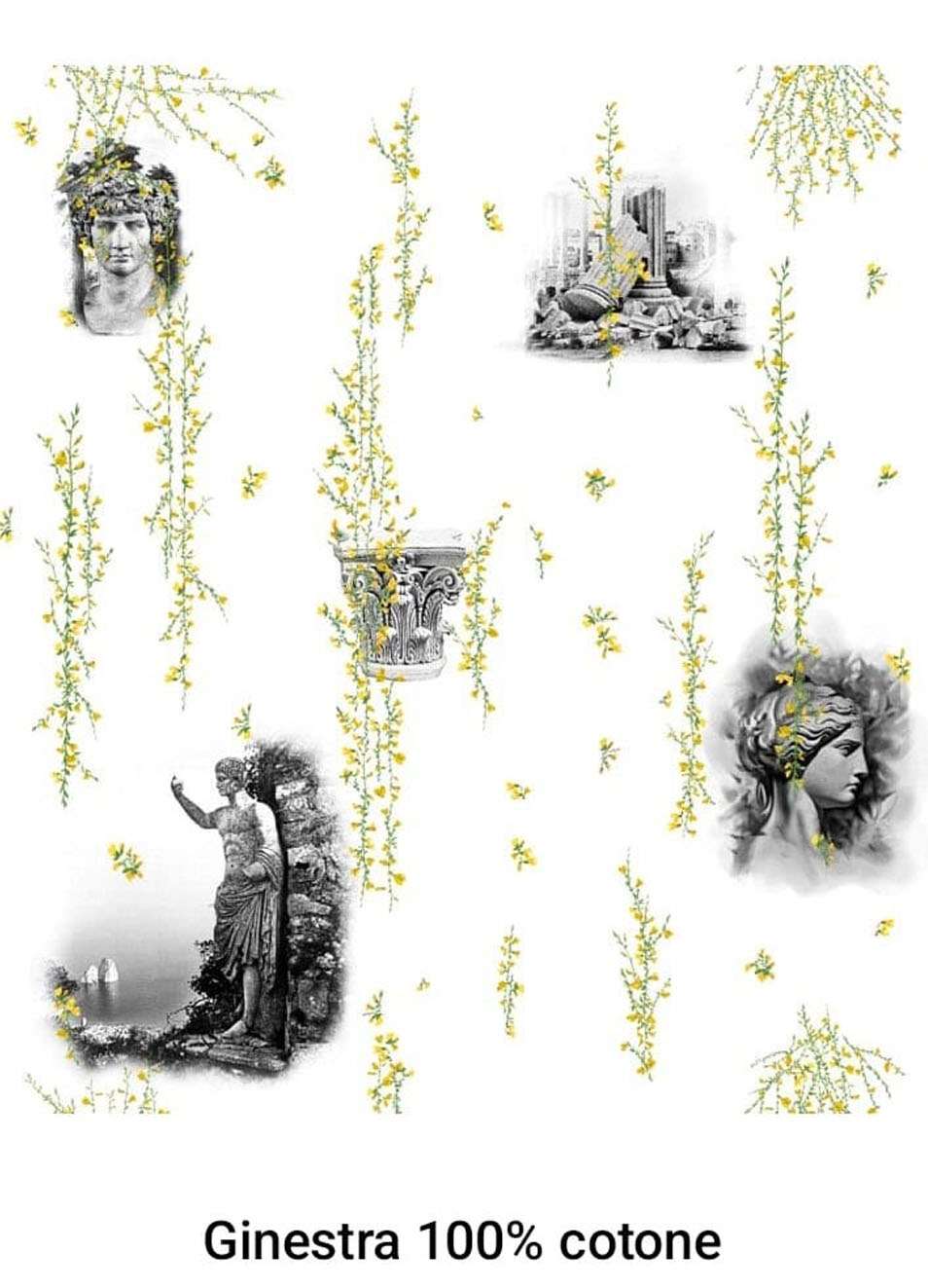 Tessuto 100% cotone con ginestre e Cesare Augusto