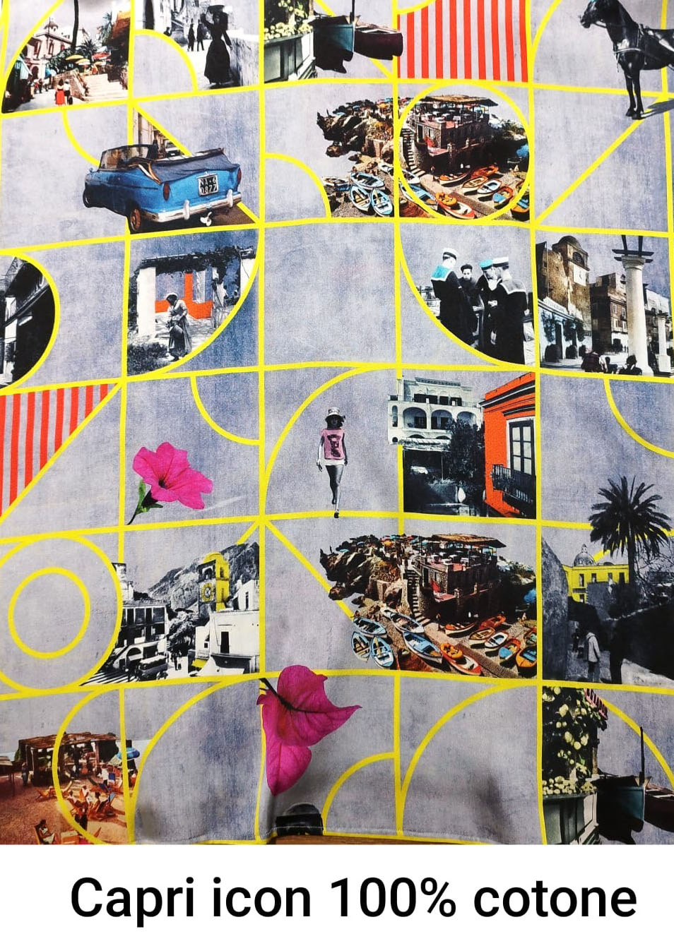 Tessuto 100% cotone con stampa icone di Capri